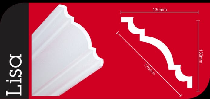 LisaCornice is manufactured from EPS polystyrene and is perfect for customers who still want a thicker, more rigid cut cornice at a lower price.